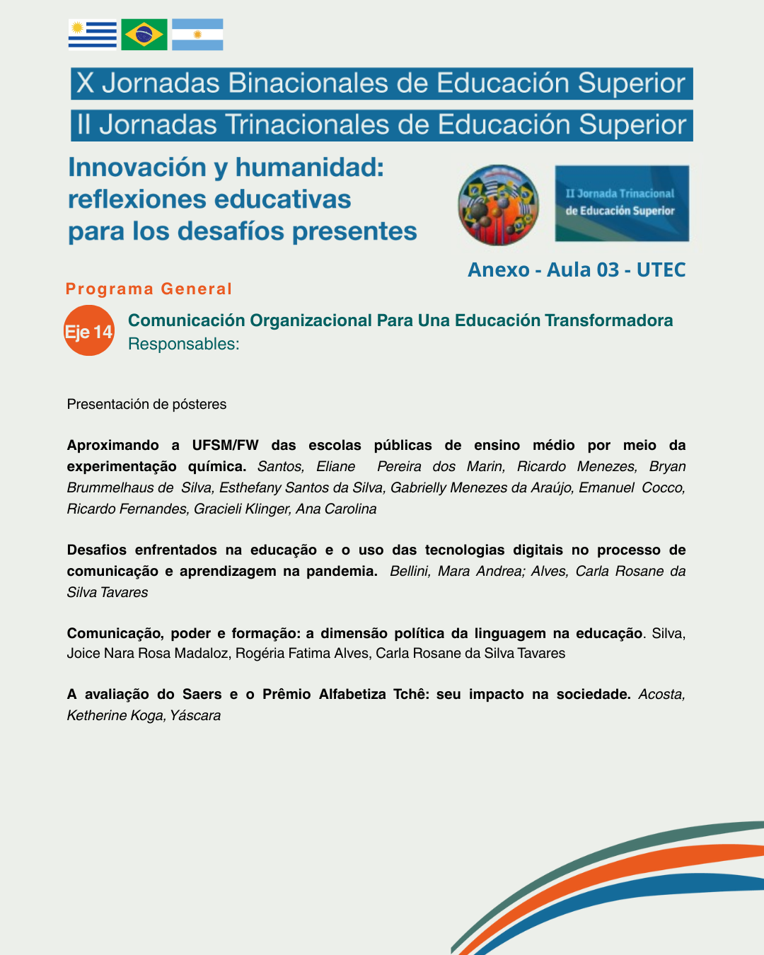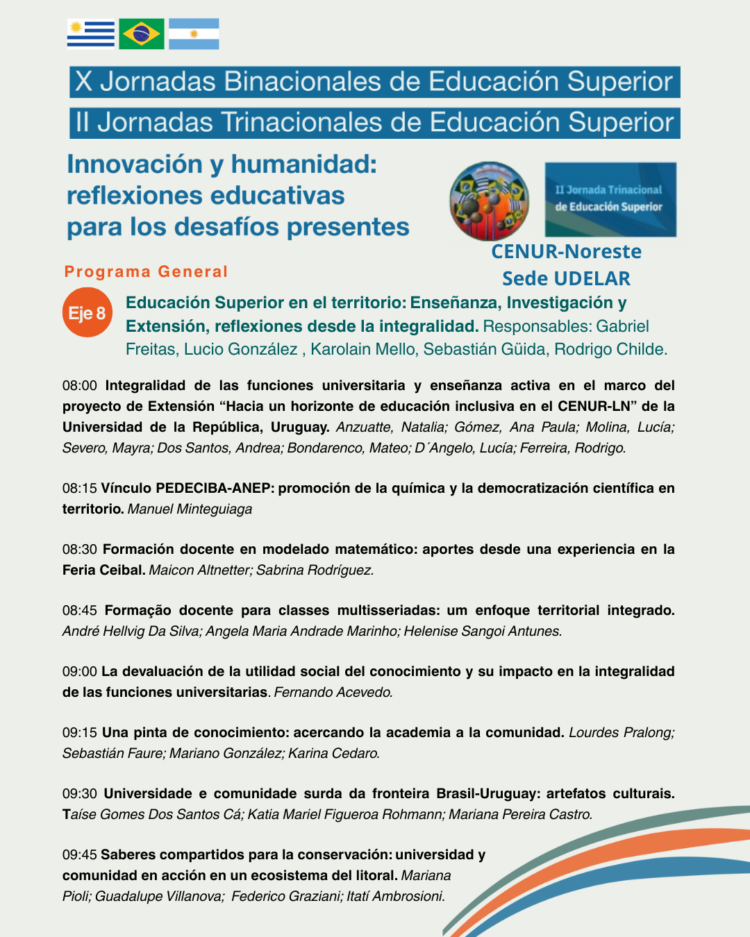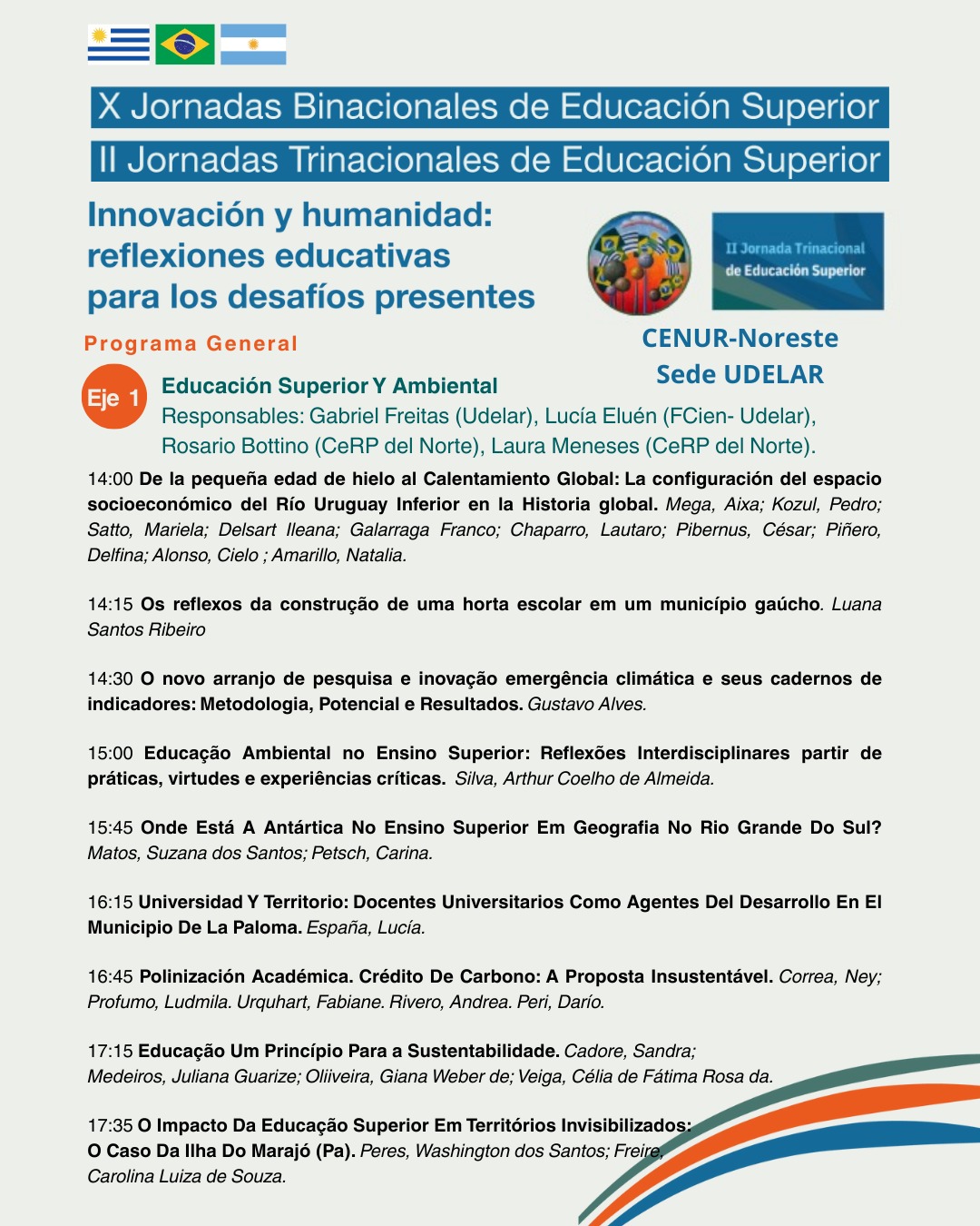 En la actualidad, los efectos de los cambios producidos por las actividades humanas en los sistemas ambientales se han vuelto más evidentes. Esta situación ha llevado a que el ambiente y sus problemáticas hayan ganado relevancia en las discusiones públicas, tornándola un tema central en la agenda de gobiernos, organismos internacionales, organizaciones sociales y academia. Este eje temático explora el papel fundamental de las instituciones de educación superior (IIES) en la promoción de la sustentabilidad ambiental, la formación de profesionales comprometidos con la mejora de la calidad ambiental de los territorios y la promoción de la Educación Ambiental en distintos espacios de la sociedad. Se invita a presentar experiencias o reflexiones teóricas que analicen cómo las IIES pueden integrar enfoques interdisciplinarios, transversales y fomentar la generación de redes multi actorales en sus planes de estudio, investigación y extensión, para abordar desafíos ambientales contemporáneos. Además, se busca promover la reflexión sobre la importancia de fomentar una cultura institucional sustentable, que incluya la gestión ambiental, la incorporación del enfoque ambiental en la medición de sustentabilidad o la reducción de huellas ecológicas y la promoción de prácticas responsables entre la comunidad universitaria, además de reflexionar sobre el liderazgo de las IIES en la generación de conocimiento crítico y la formación de profesionales que tengan presente en su praxis la Educación Ambiental.