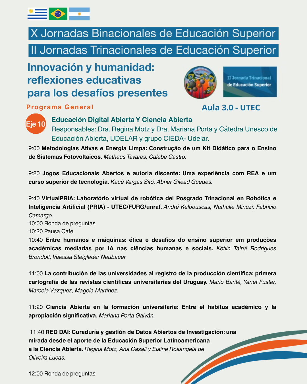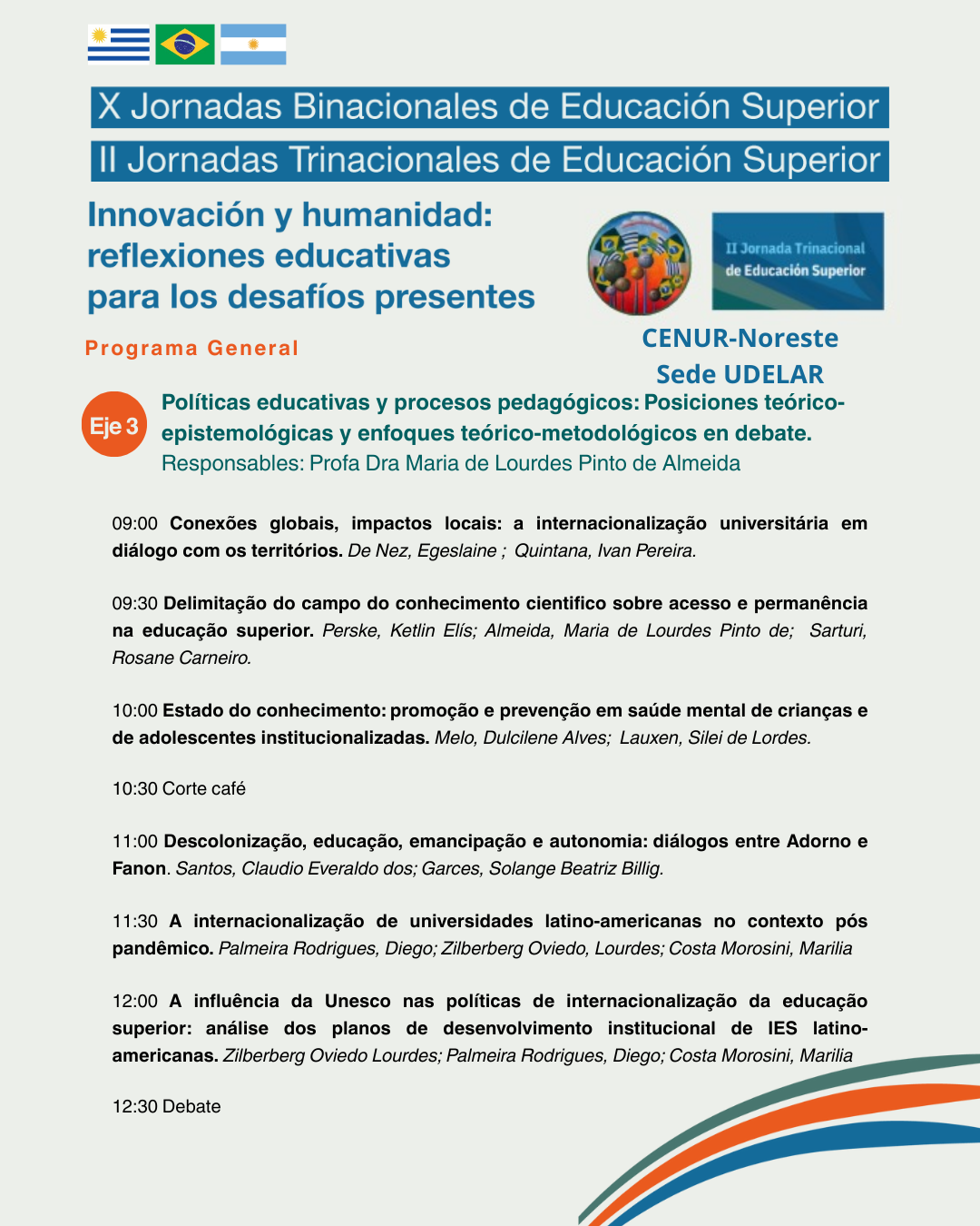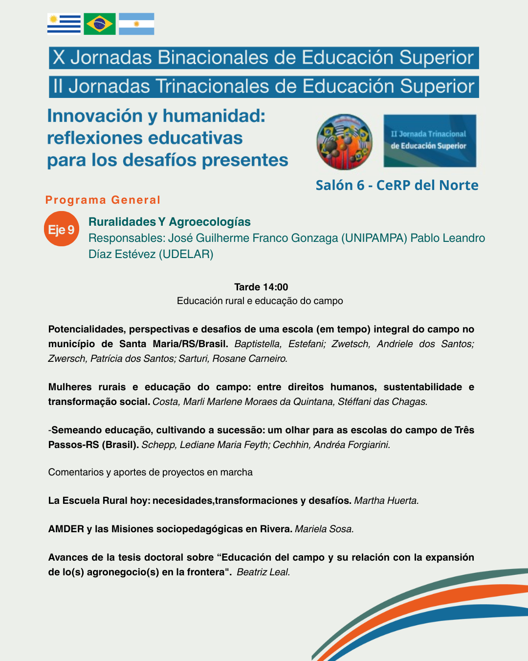En la actualidad, los efectos de los cambios producidos por las actividades humanas en los sistemas ambientales se han vuelto más evidentes. Esta situación ha llevado a que el ambiente y sus problemáticas hayan ganado relevancia en las discusiones públicas, tornándola un tema central en la agenda de gobiernos, organismos internacionales, organizaciones sociales y academia. Este eje temático explora el papel fundamental de las instituciones de educación superior (IIES) en la promoción de la sustentabilidad ambiental, la formación de profesionales comprometidos con la mejora de la calidad ambiental de los territorios y la promoción de la Educación Ambiental en distintos espacios de la sociedad. Se invita a presentar experiencias o reflexiones teóricas que analicen cómo las IIES pueden integrar enfoques interdisciplinarios, transversales y fomentar la generación de redes multi actorales en sus planes de estudio, investigación y extensión, para abordar desafíos ambientales contemporáneos. Además, se busca promover la reflexión sobre la importancia de fomentar una cultura institucional sustentable, que incluya la gestión ambiental, la incorporación del enfoque ambiental en la medición de sustentabilidad o la reducción de huellas ecológicas y la promoción de prácticas responsables entre la comunidad universitaria, además de reflexionar sobre el liderazgo de las IIES en la generación de conocimiento crítico y la formación de profesionales que tengan presente en su praxis la Educación Ambiental.